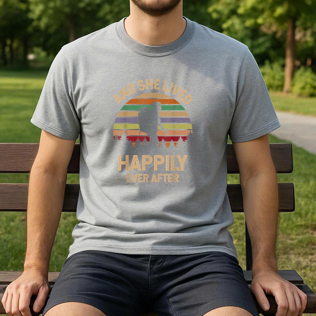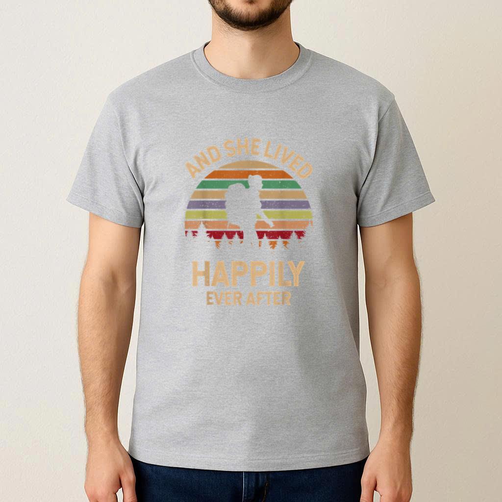 Comfy, casual, and always in style, this And She Lived Happily Ever After Hiking Camping T-Shirt T-shirt is perfect for daily wear or easy gifting.