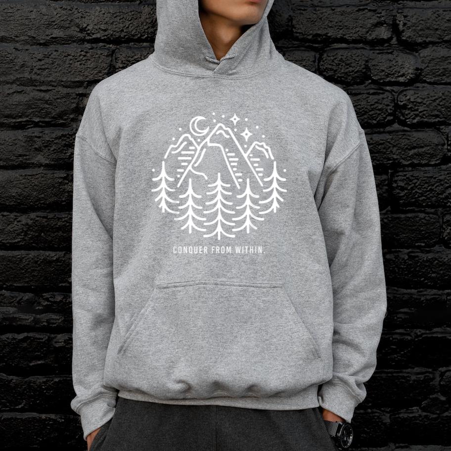 The Camping Conquer From Within Hoodie hoodie combines comfort warmth and style for a go anywhere piece that works in any season. Soft inside and durable outside it is perfect for layering or lounging