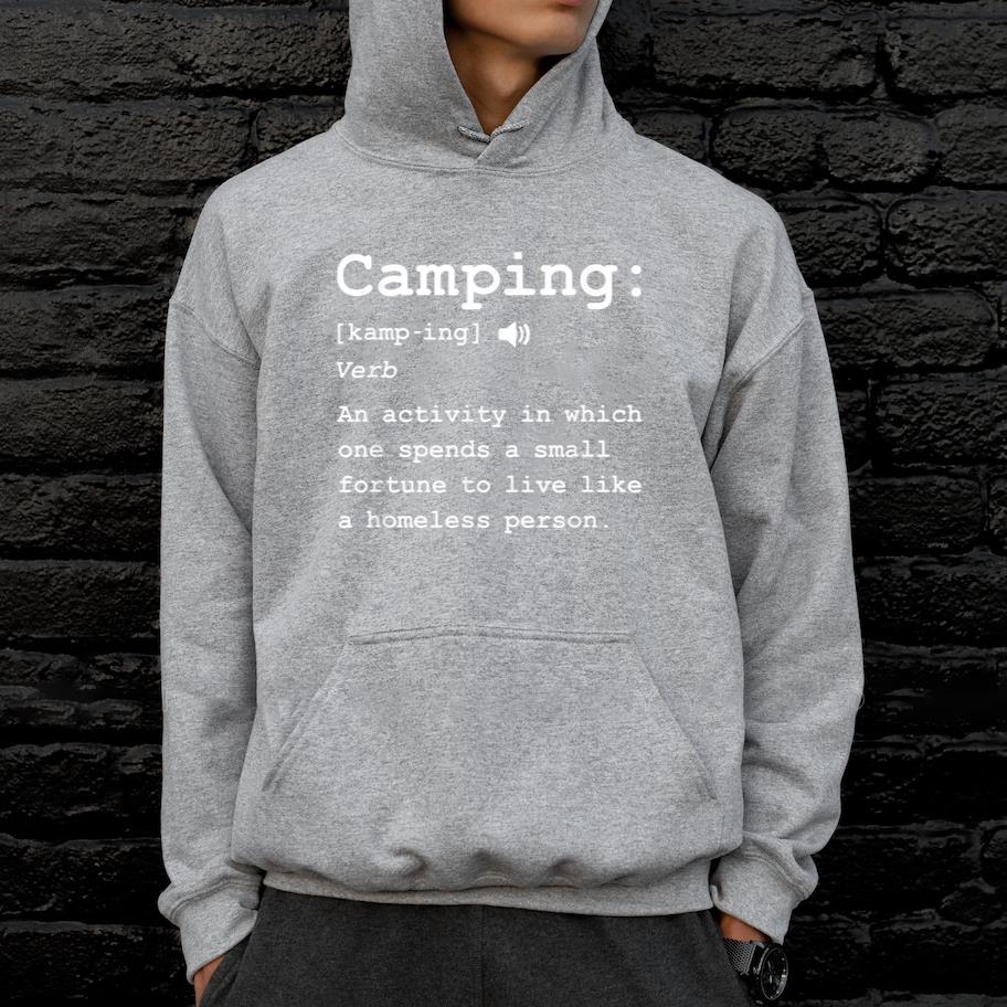 The Camping Definition Live Like Homeless Person Hoodie hoodie combines comfort warmth and style for a go anywhere piece that works in any season. Soft inside and durable outside it is perfect for layering or lounging