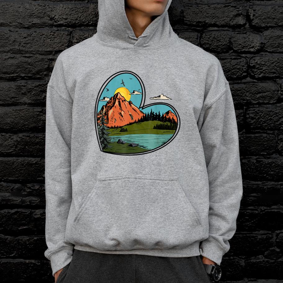 The Camping Heart Retro Hoodie hoodie combines comfort warmth and style for a go anywhere piece that works in any season. Soft inside and durable outside it is perfect for layering or lounging
