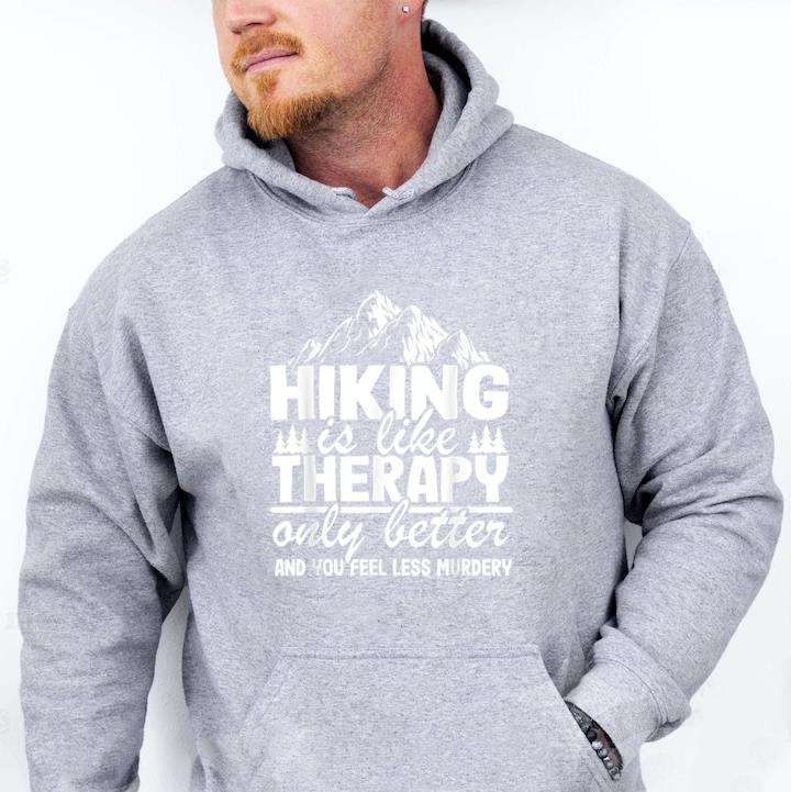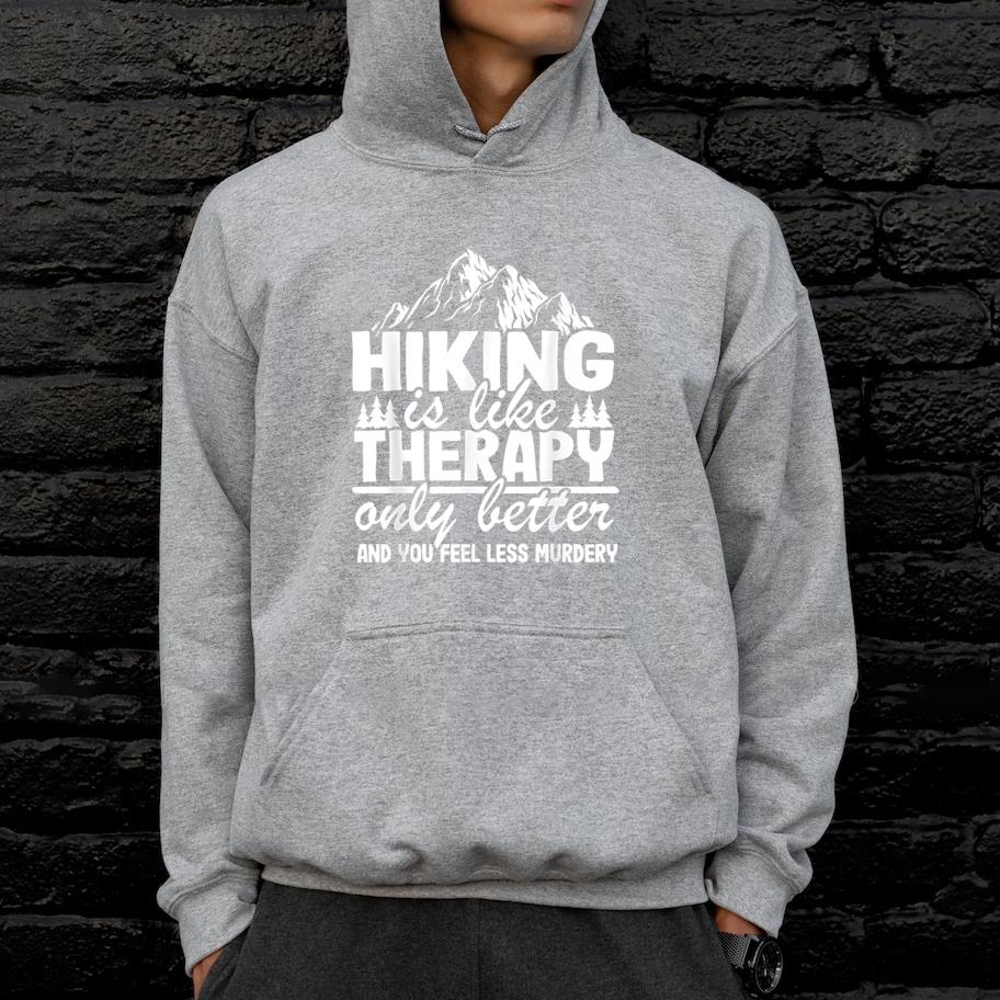 The Camping Hiking Is Like Therapy Vintage Mountain Hoodie hoodie combines comfort warmth and style for a go anywhere piece that works in any season. Soft inside and durable outside it is perfect for layering or lounging
