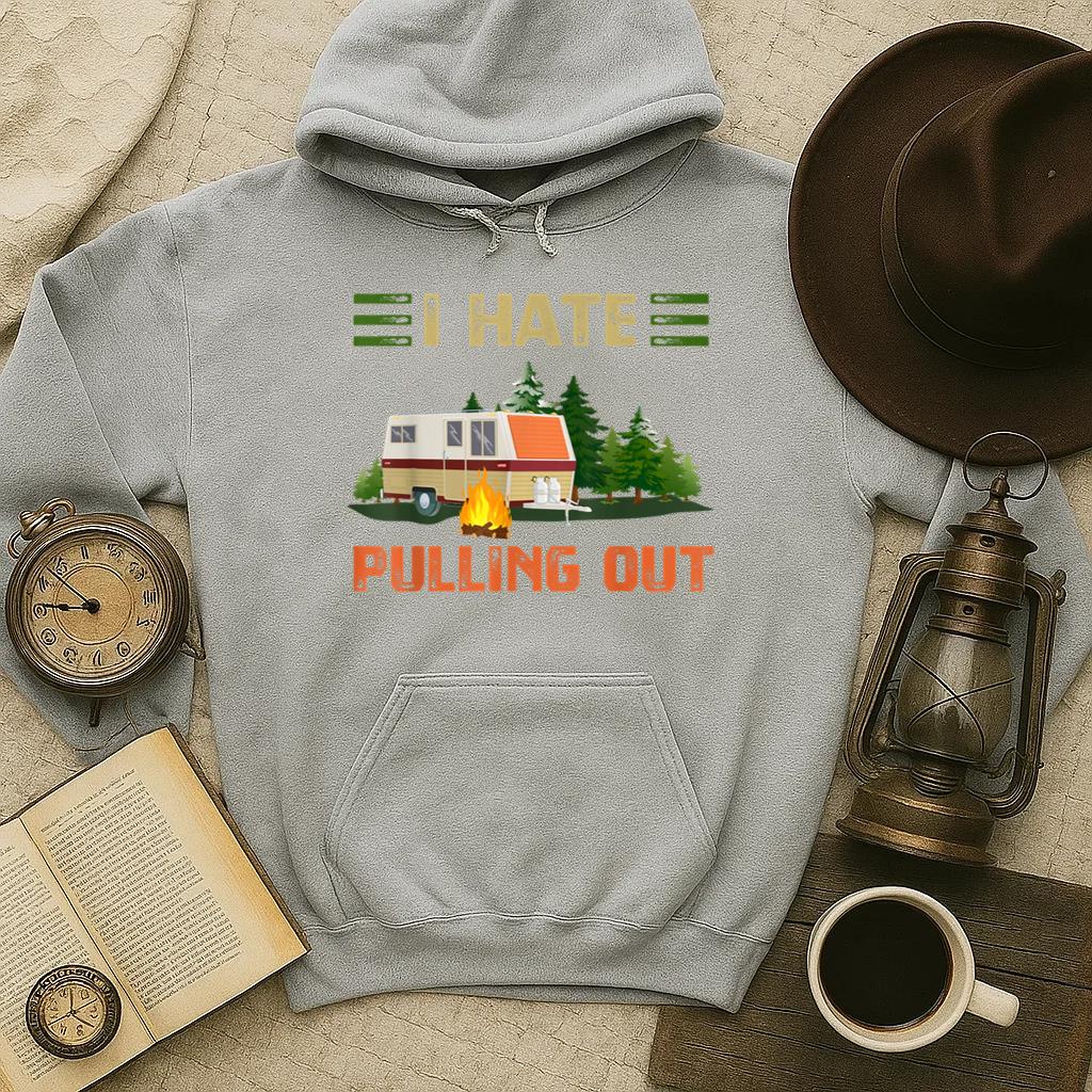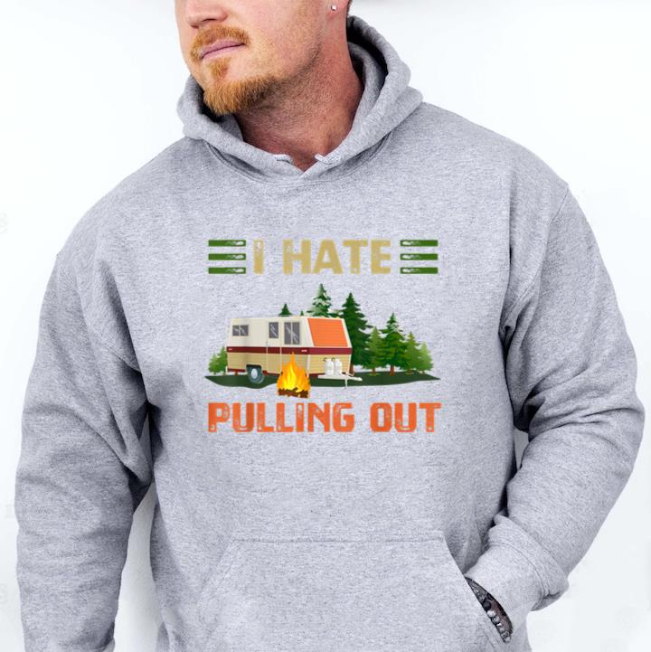 The Camping I Hate Pulling Out Travel Trailer RV Hoodie hoodie combines comfort warmth and style for a go anywhere piece that works in any season. Soft inside and durable outside it is perfect for layering or lounging