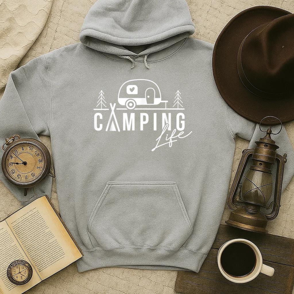The Camping Life Happy Camper Hoodie hoodie combines comfort warmth and style for a go anywhere piece that works in any season. Soft inside and durable outside it is perfect for layering or lounging